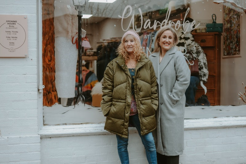 Neston is a very important place to Hil & Sue. Hil lived in Little Neston for many years — West Vale to be precise — and Sue lives very nearby in Willaston. They decided to create Wardrobe at The Cross in the heart of Neston — as close to the much‑famed Cross as possible — because the town holds such a special place in their hearts.